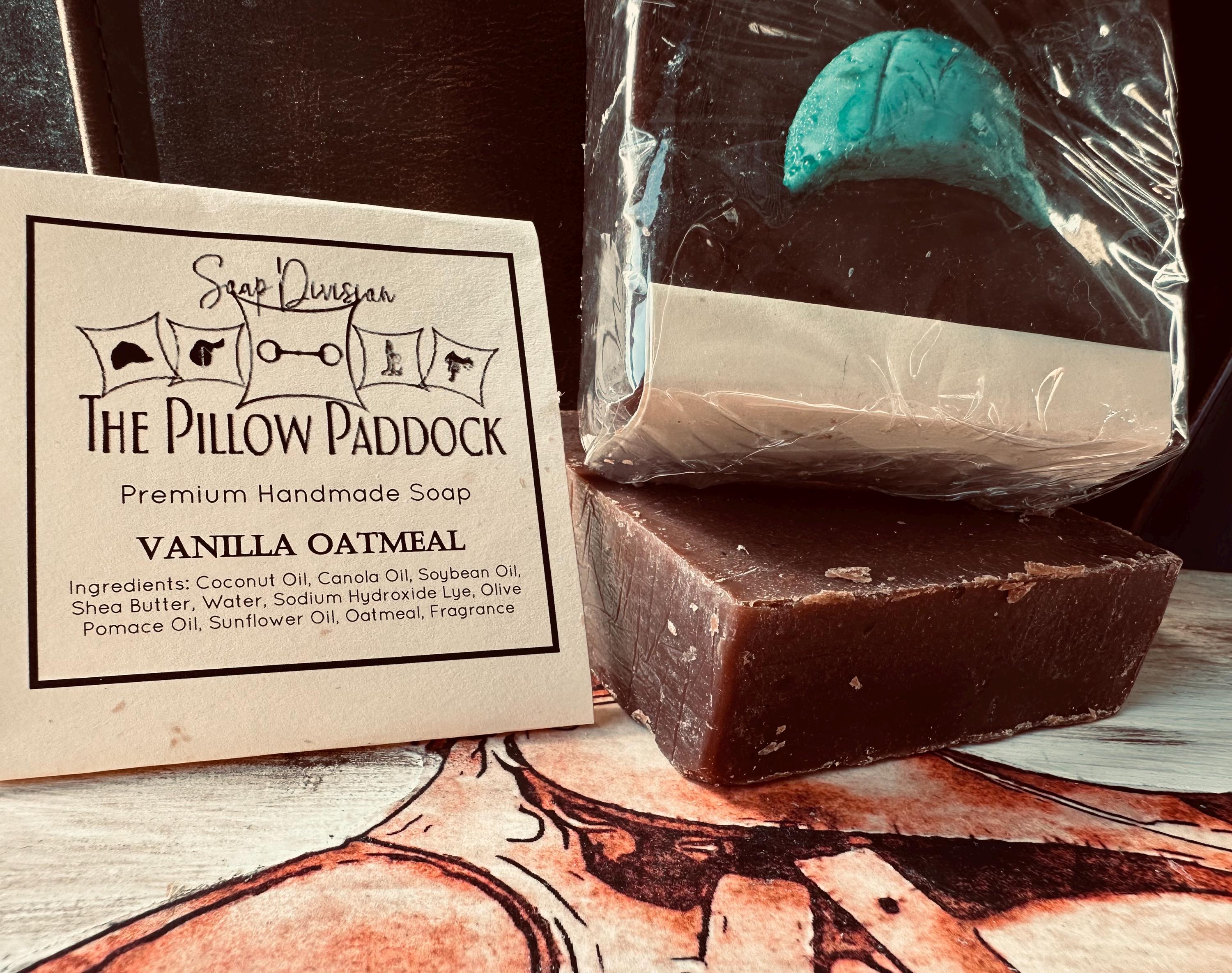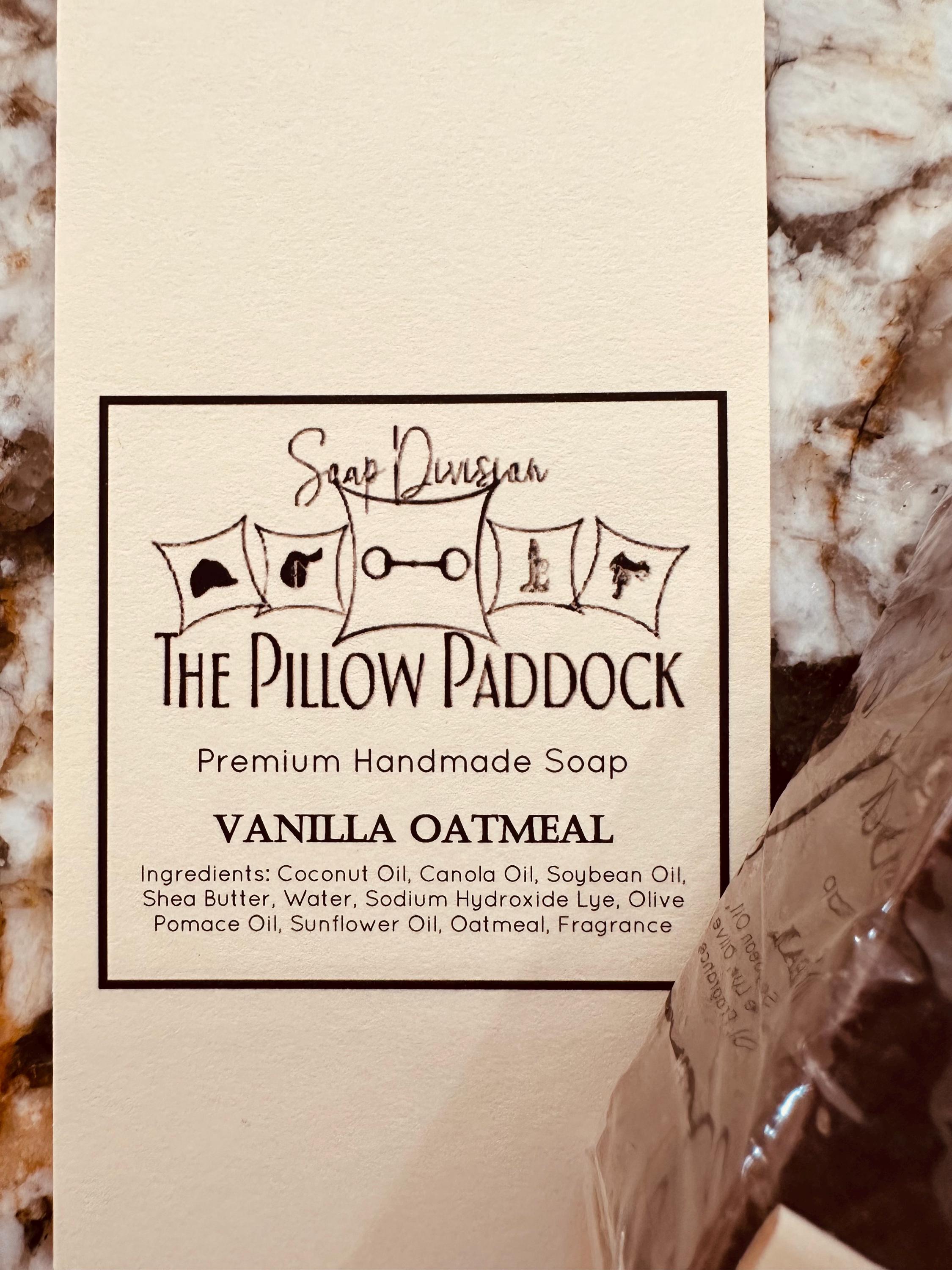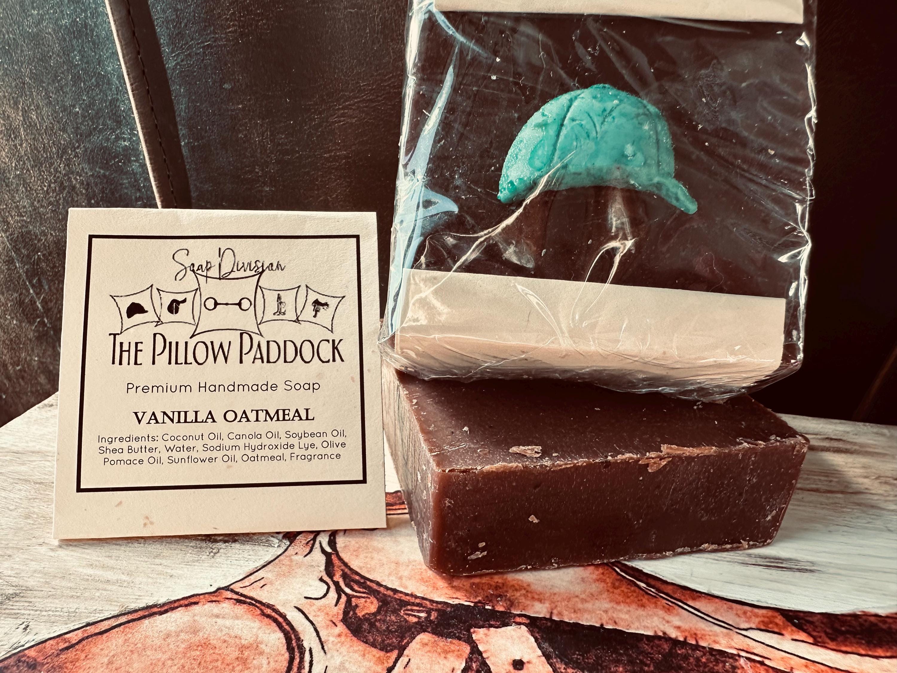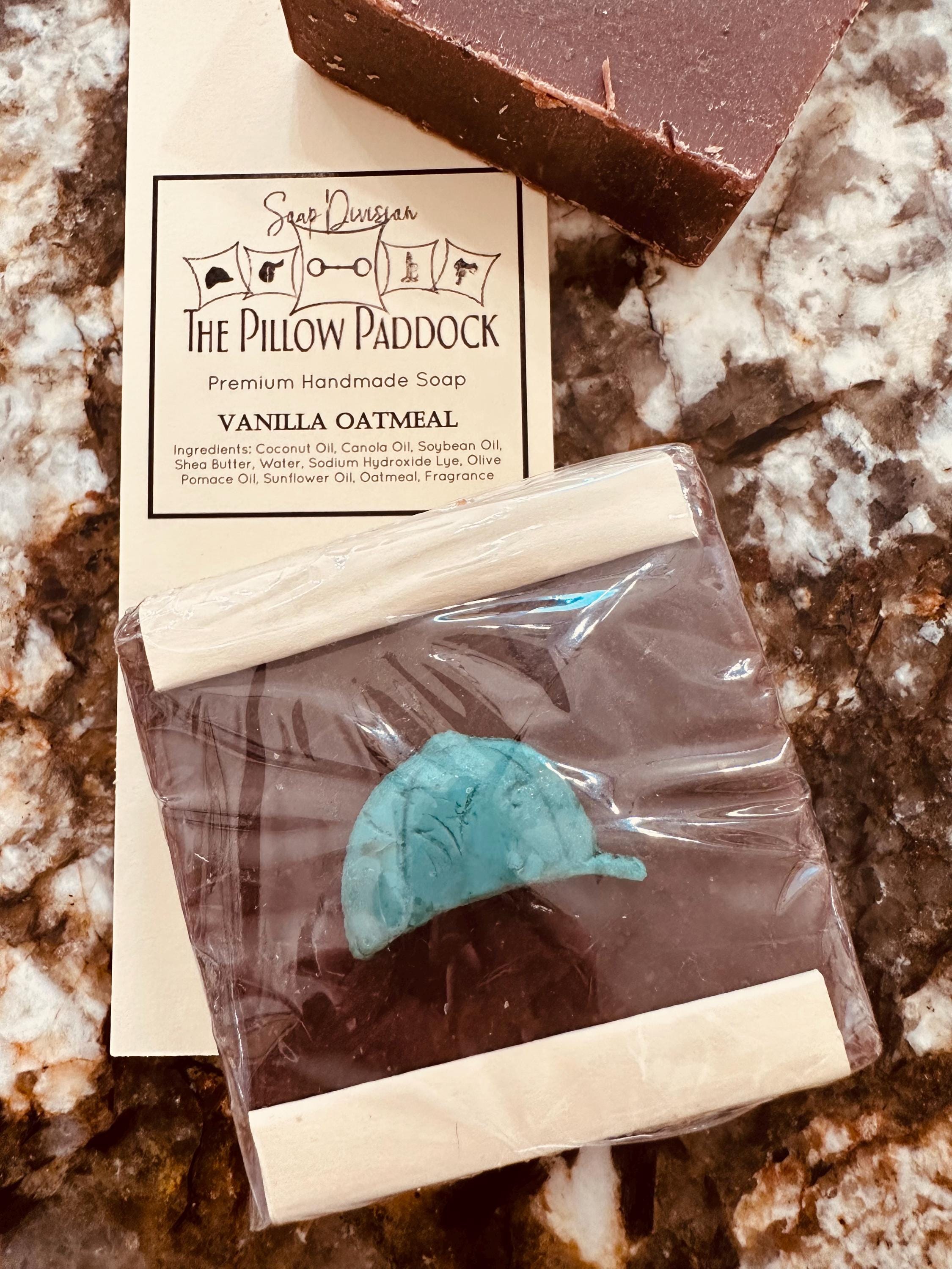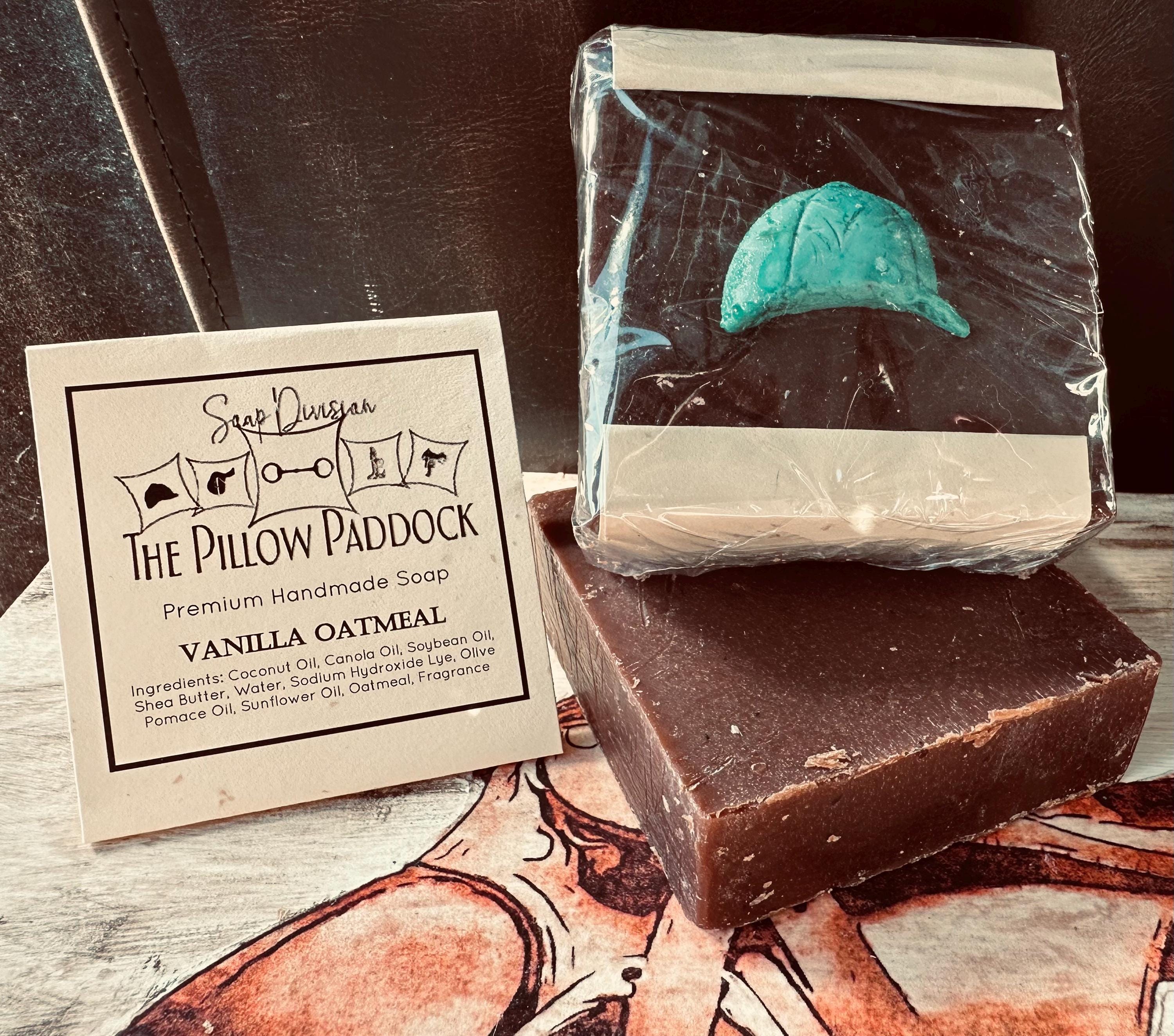 Vanilla Oatmeal Soap-embellished with an equestrian theme! Pure warm Moroccan vanilla beans with Ground Oatmeal as an exfoliant.