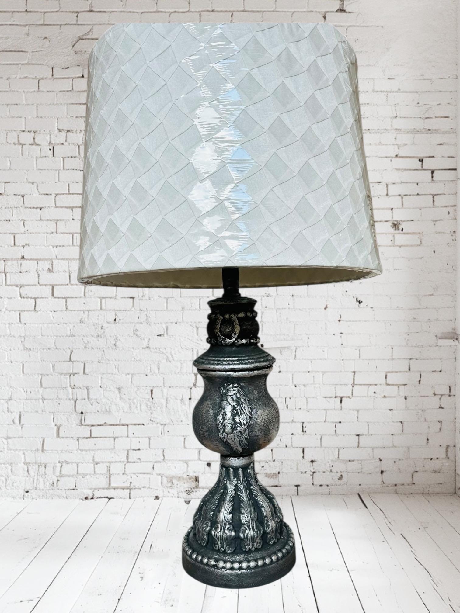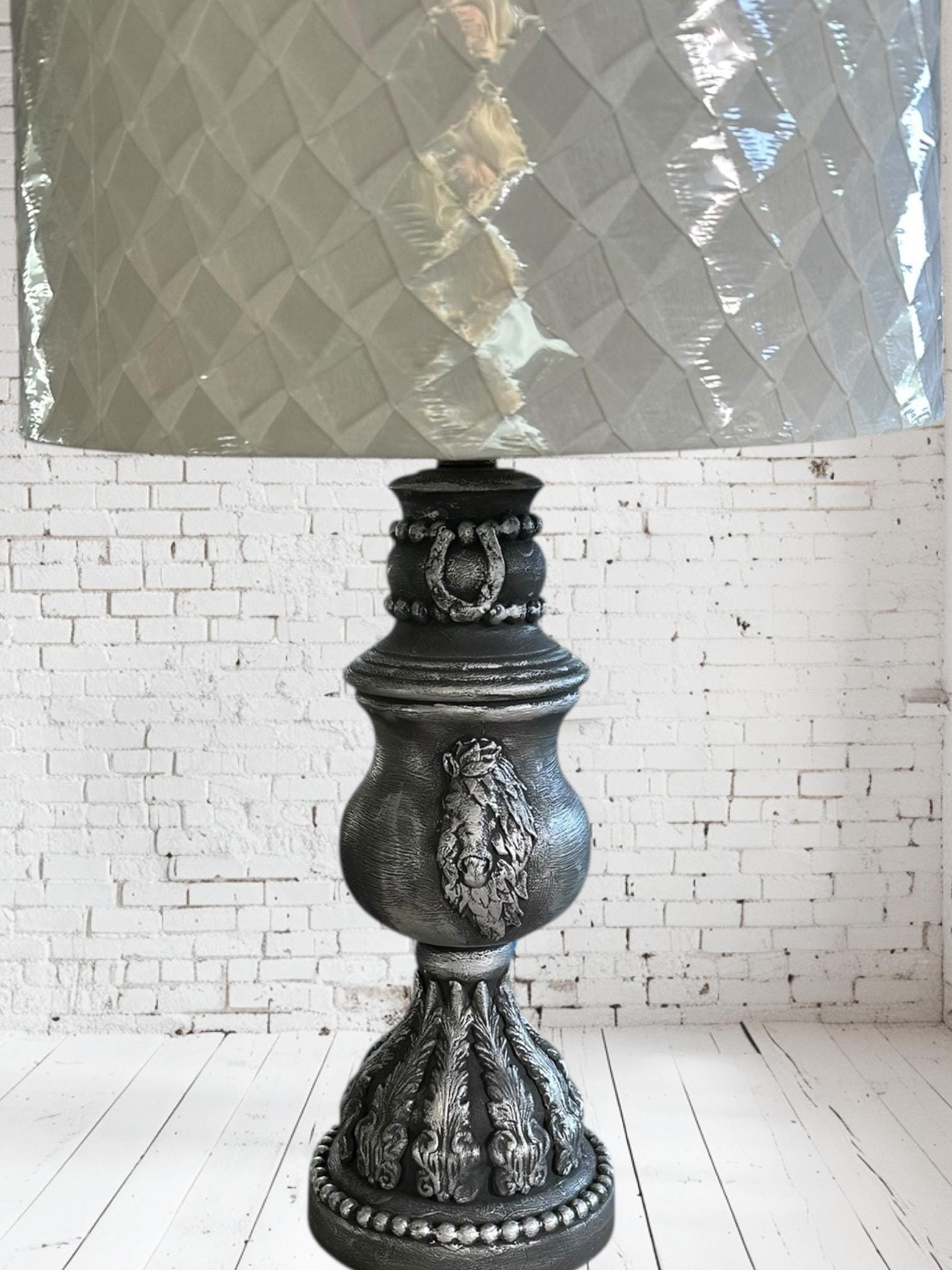 This is a beautiful upstyled lamp from a brass to a beautiful charcoal black with silver finish to highlight the horse head and the hand crafted pieces that have been created to make this a one of a kind styled lamp. All hand done with the help of an autistic adult son that is thriving to find his purpose and a mom that works hard to find his purpose with him. I hope you love it and stay tuned for many more creations. UpStyled by an equestrian!!