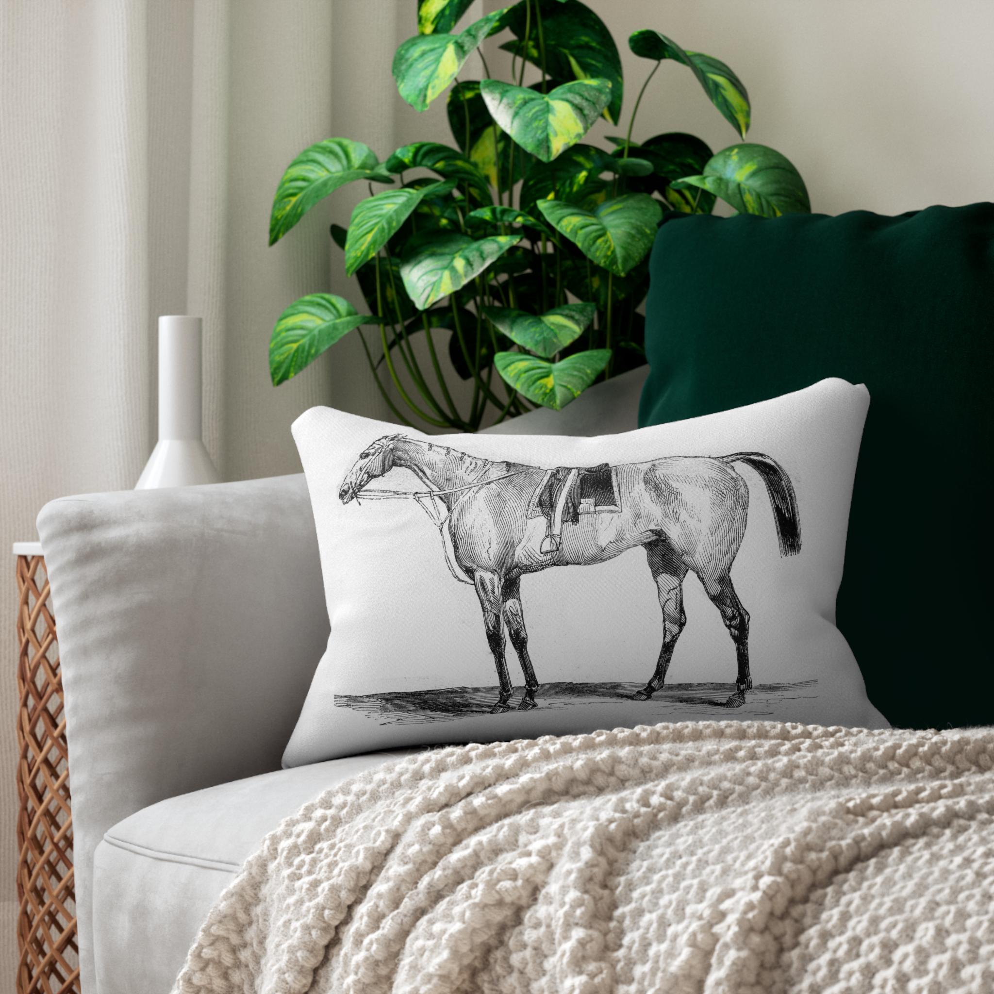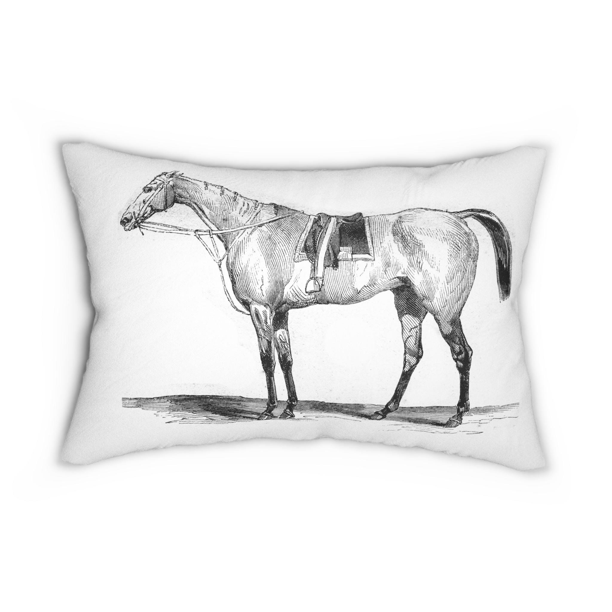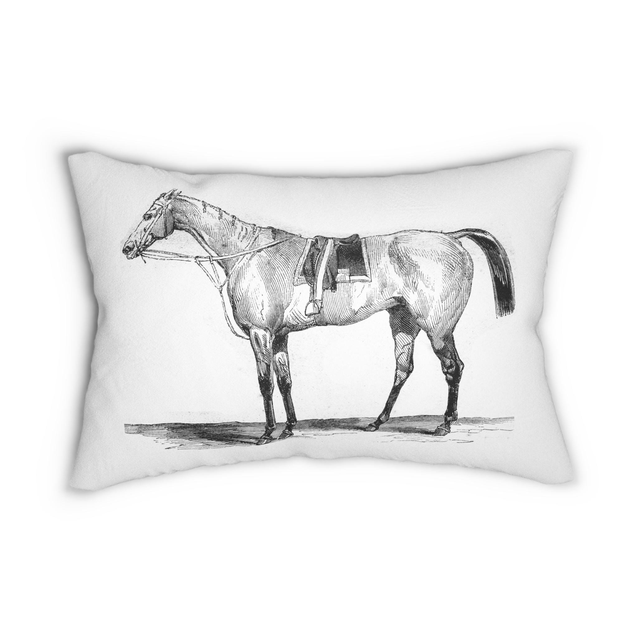 Vintage Equestrian Horse Lumbar Pillow | Pencil Sketch Riding Horse