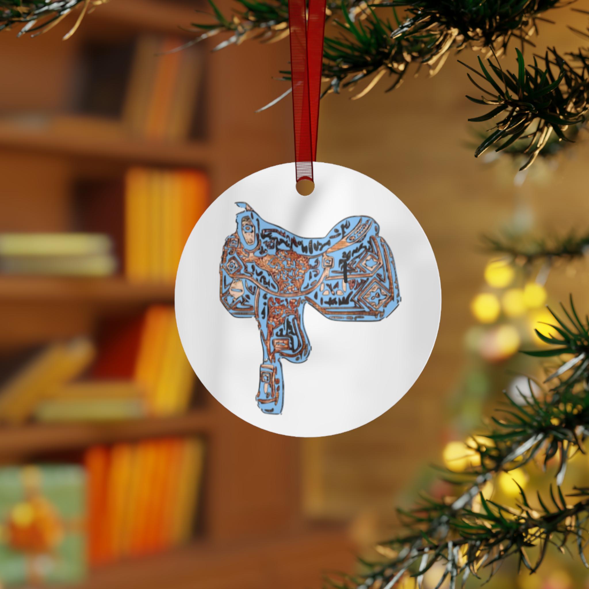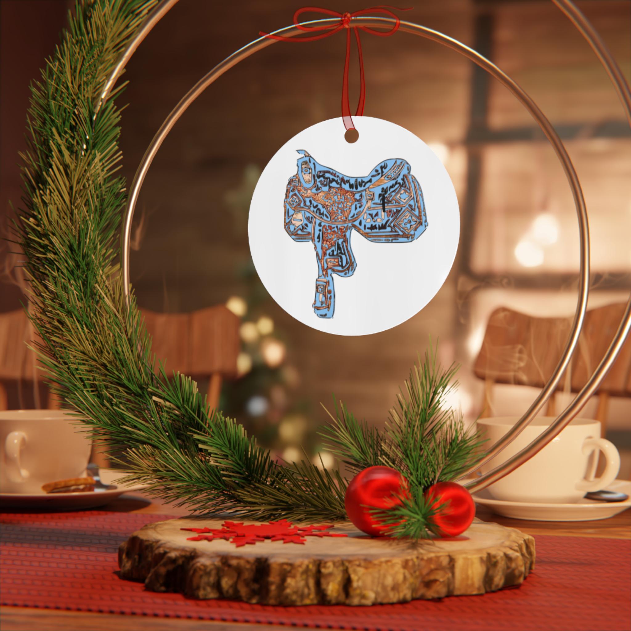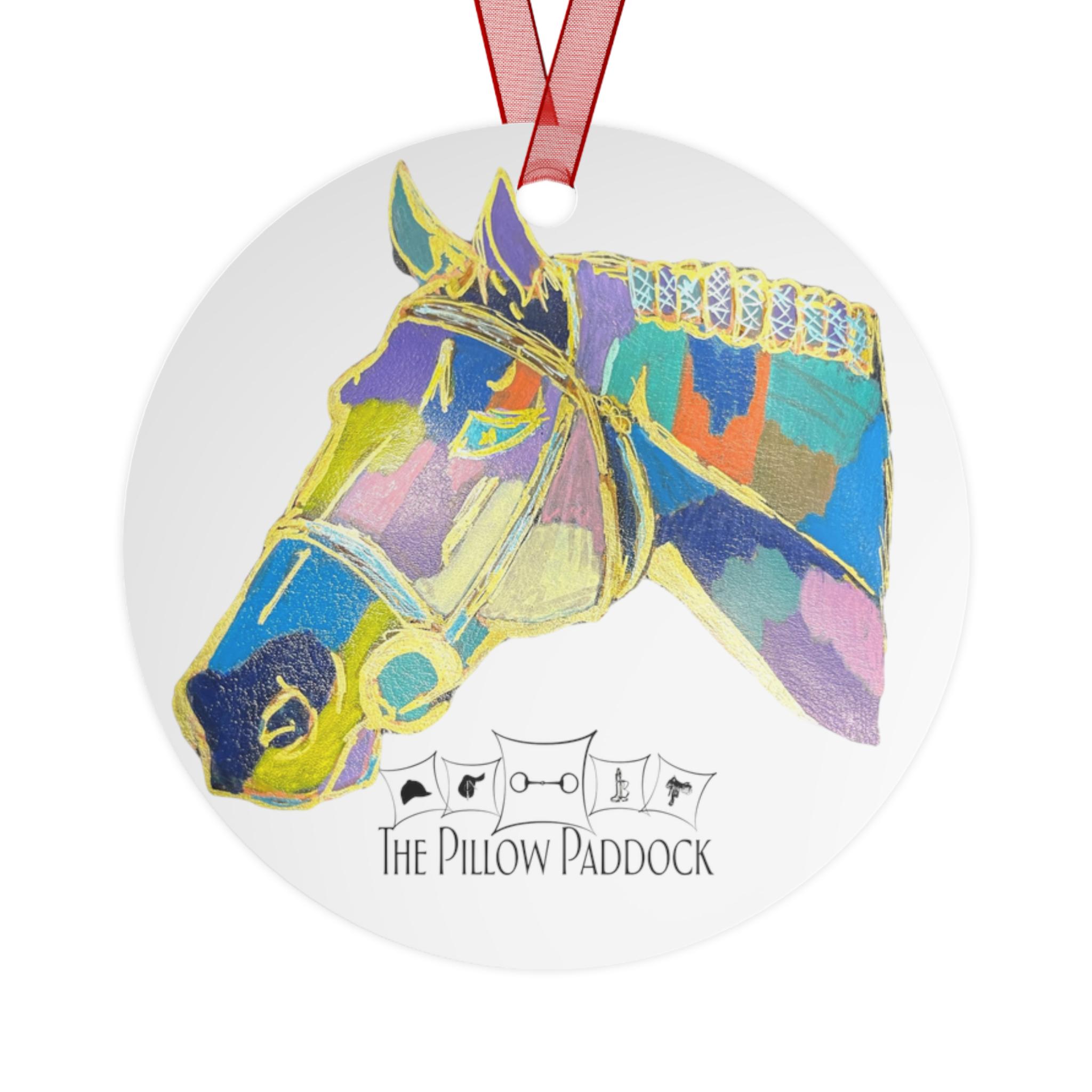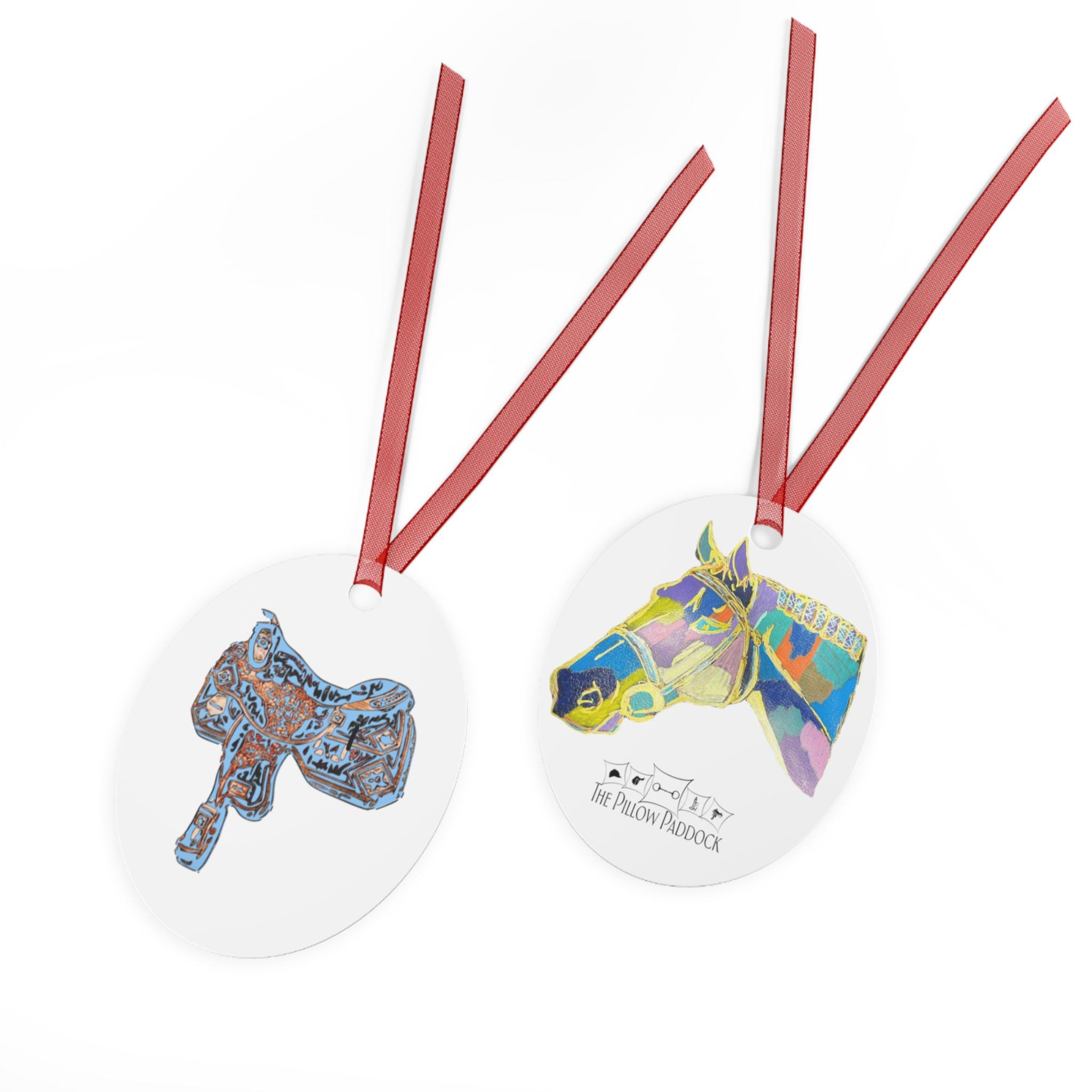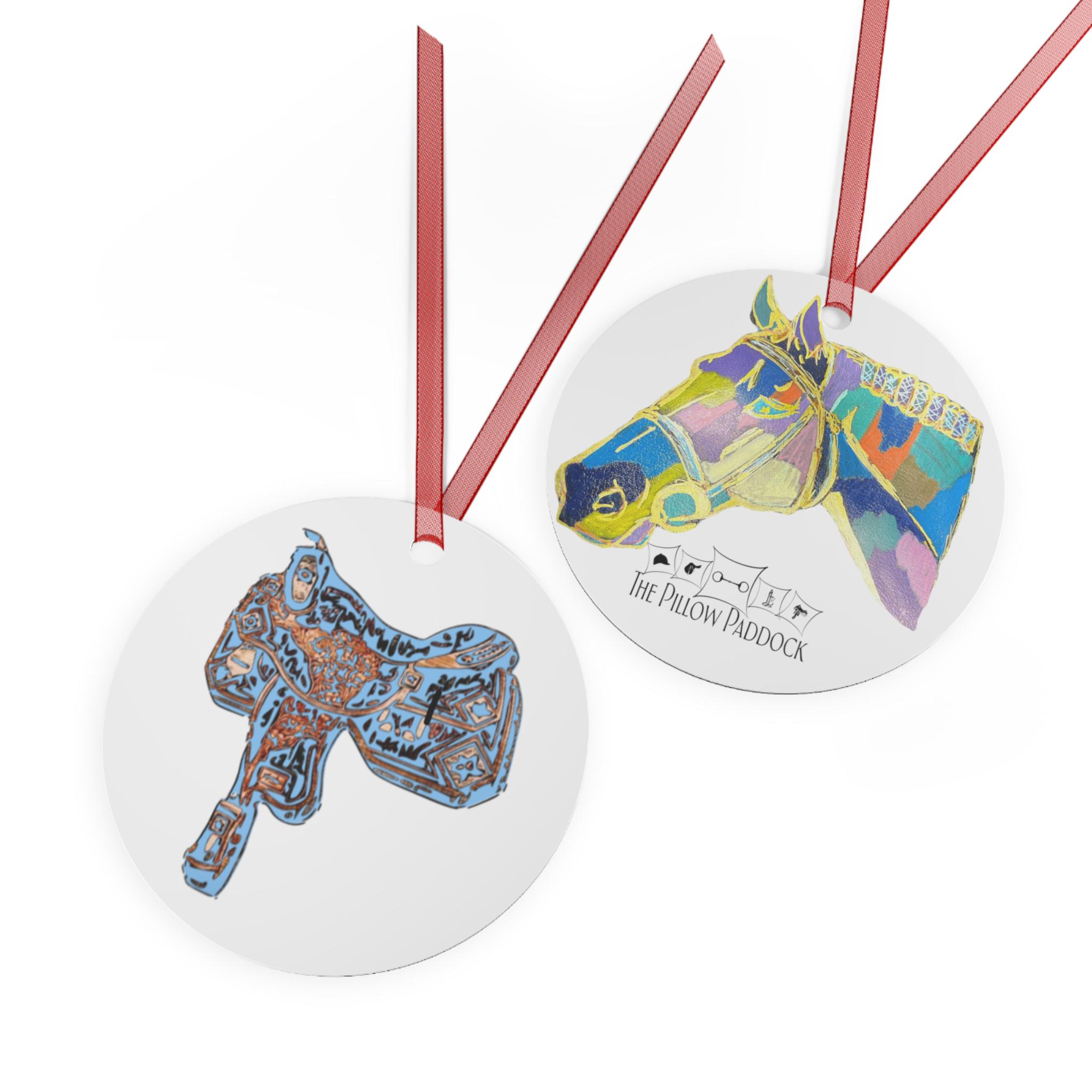 Colorful Horse Head Metal Ornament | Rodeo Saddle Illustration Ornament