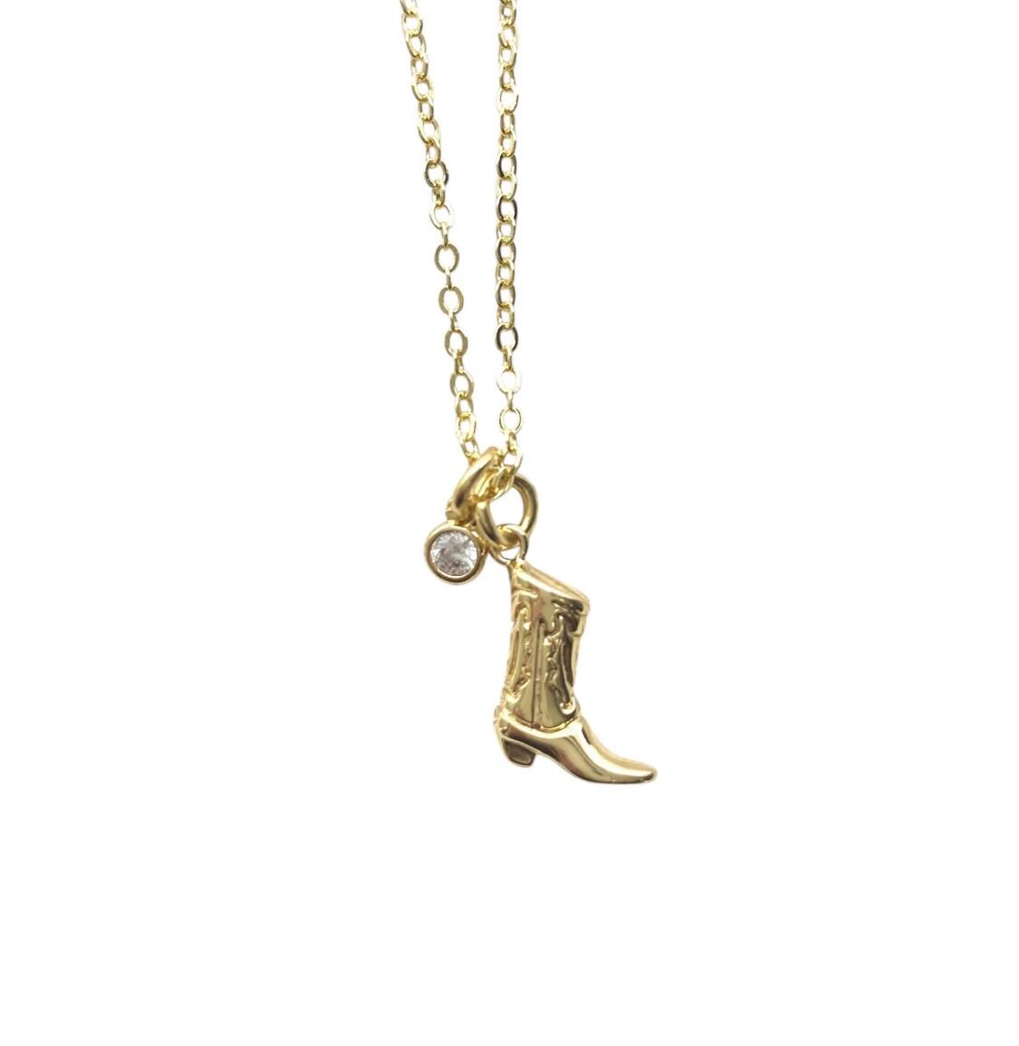 Delicate and timeless, these dainty cowboy boot necklaces add the perfect touch of elegance to any look. Crafted on a high-quality, non-tarnishing chain. The adjustable length makes it easy to layer or wear solo, ensuring a flattering fit for every neckline. Whether you're dressing up or keeping it casual, these minimal charm necklaces are a subtle yet meaningful addition to your jewelry collection. Approximately 17.5"-19.5" in length. Choose from gold or silver.