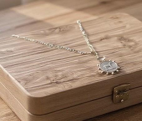 This French horse coin necklace has a timeless vintage feel with classic equestrian charm. The statement coin pendant features a horse design paired with a genuine crystal quartz connector, creating a unique layered focal point.